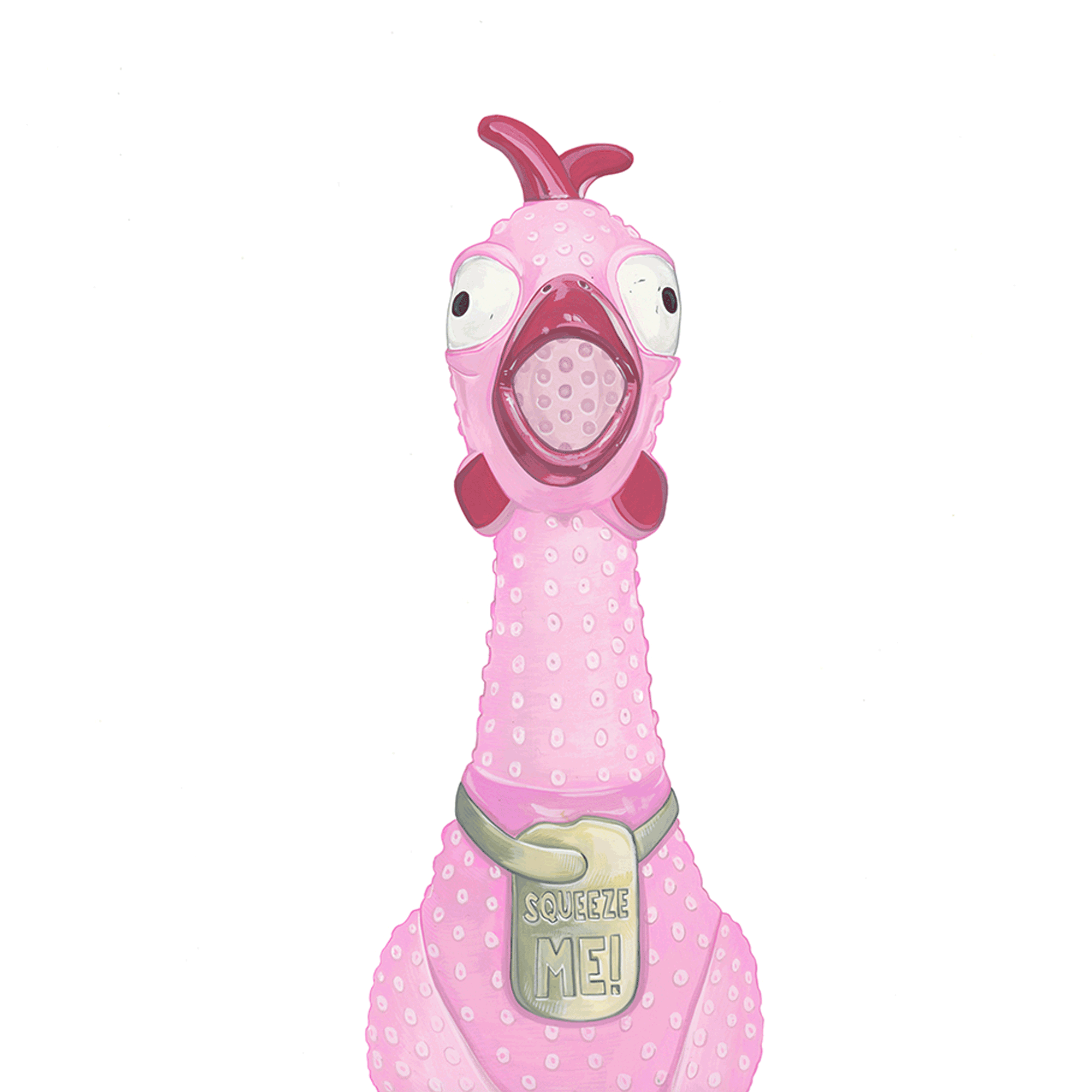 My Favorite Toy explores the quiet intimacy and humor of dogs with their most cherished objects: soft toys, well-worn balls, or, in some cases, humble pieces of trash transformed by affection. Each painting examines the unique bond between animal and object, capturing not only the dog’s personality but also the emotion ascribed to their possession.