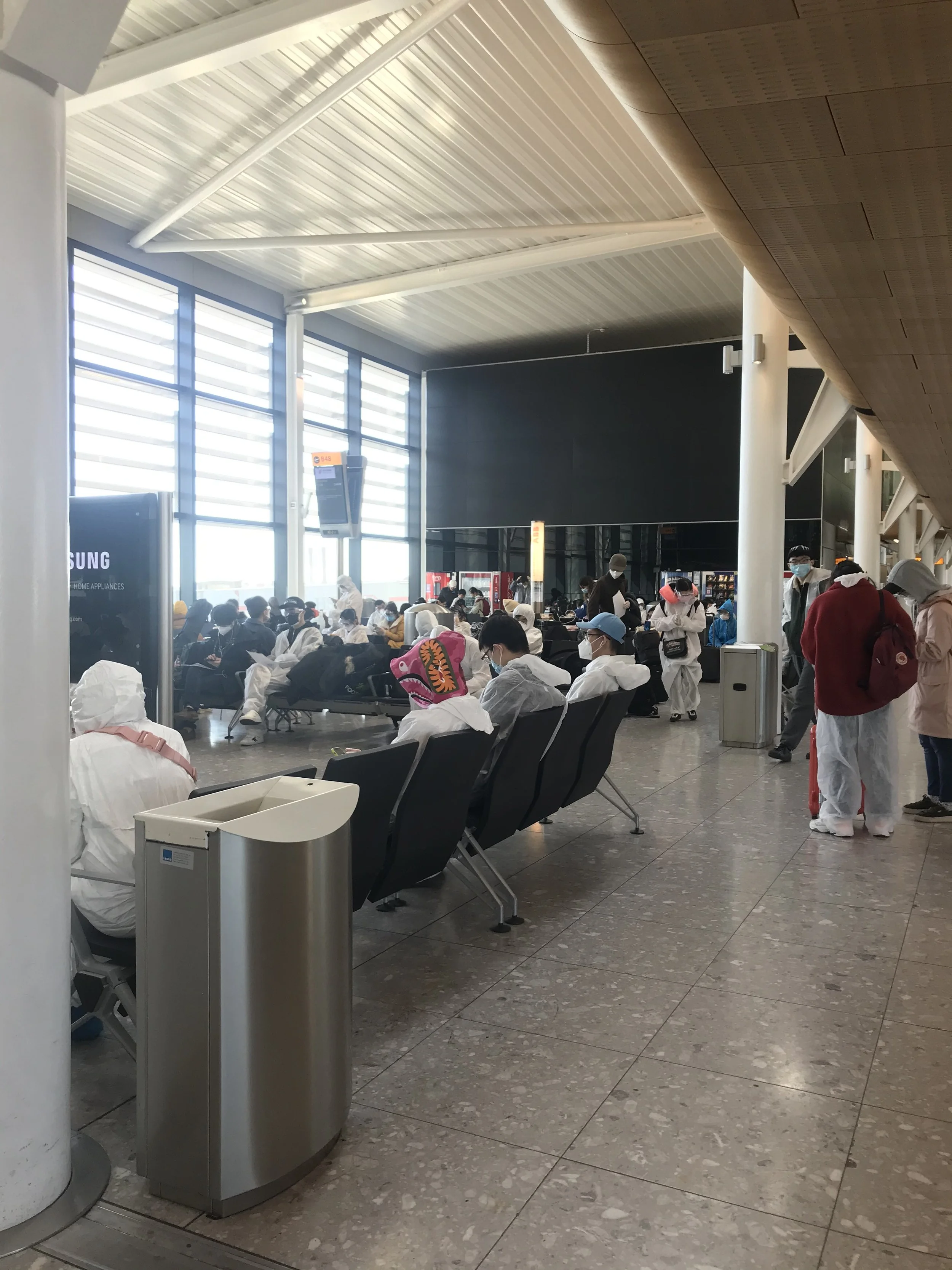 The last flight out of London was a trip. I had never seen so many hazmat suits in one place before, and I felt super out of place traveling with a dog.